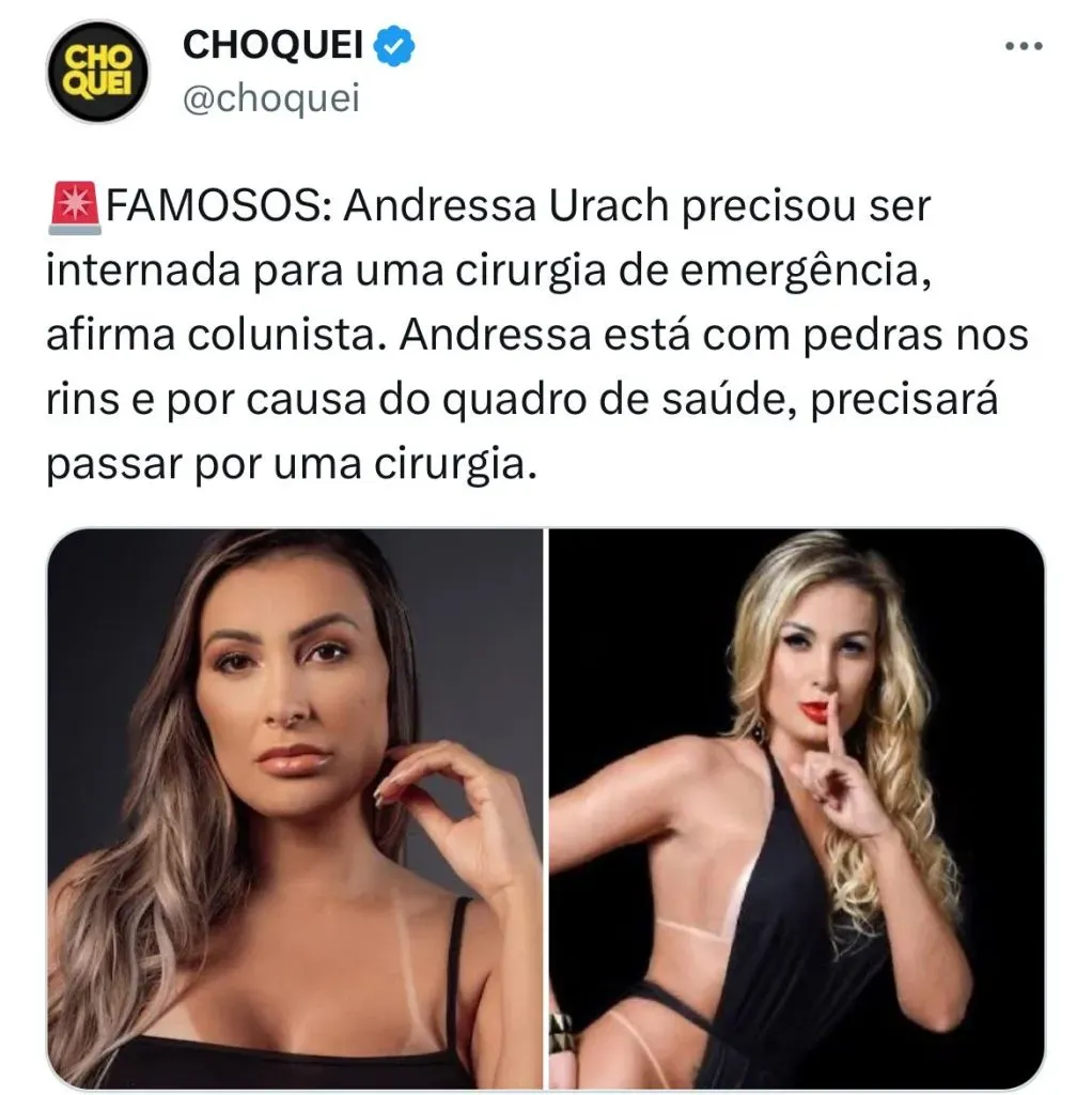 Andressa Urach precisou ser hospitalizada neste sábado (16/09) por um motivo preocupante. A ex-miss Bumbum precisou ficar em uma unidade de saúde em Porto Alegre, onde será operada.