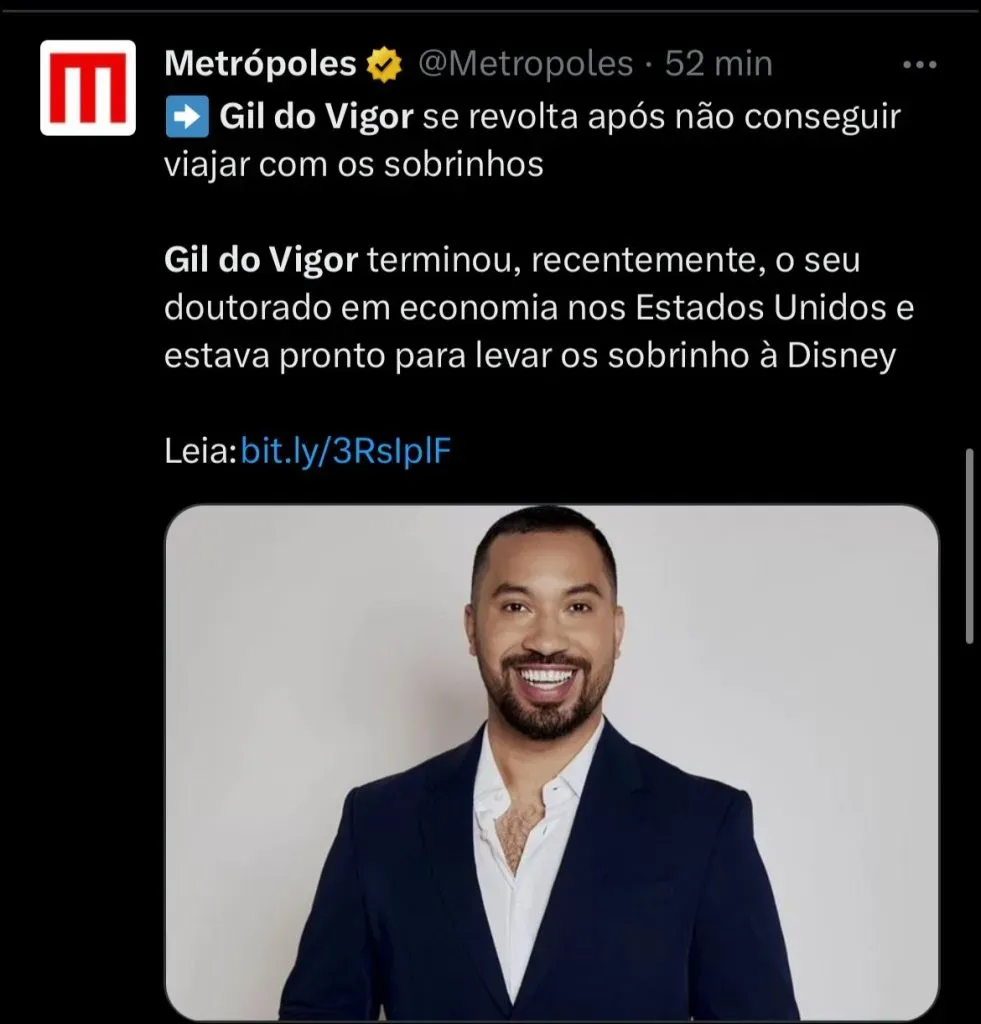 Depois de uma longa jornada para concluir o seu PHD nos Estados Unidos, Gil do Vigor estava disposto a curtir mais momentos familiares, mas infelizmente acabou sendo impedido de voltar ao Brasil para viajar com seus sobrinhos.
